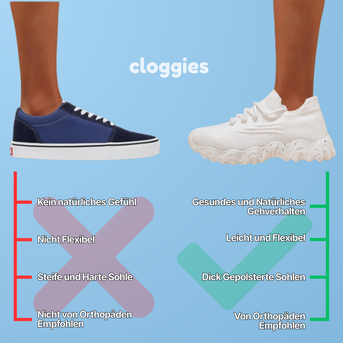 Wenn Sie sich für Cloggies Mira Sneakers entscheiden, entscheiden Sie sich für Komfort, gesunde Füße und ein wirklich natürliches Gehgefühl. Diese Schuhe geben Ihnen das Gefühl, auf Kissen zu laufen, und bieten gleichzeitig den notwendigen Schutz und Halt.