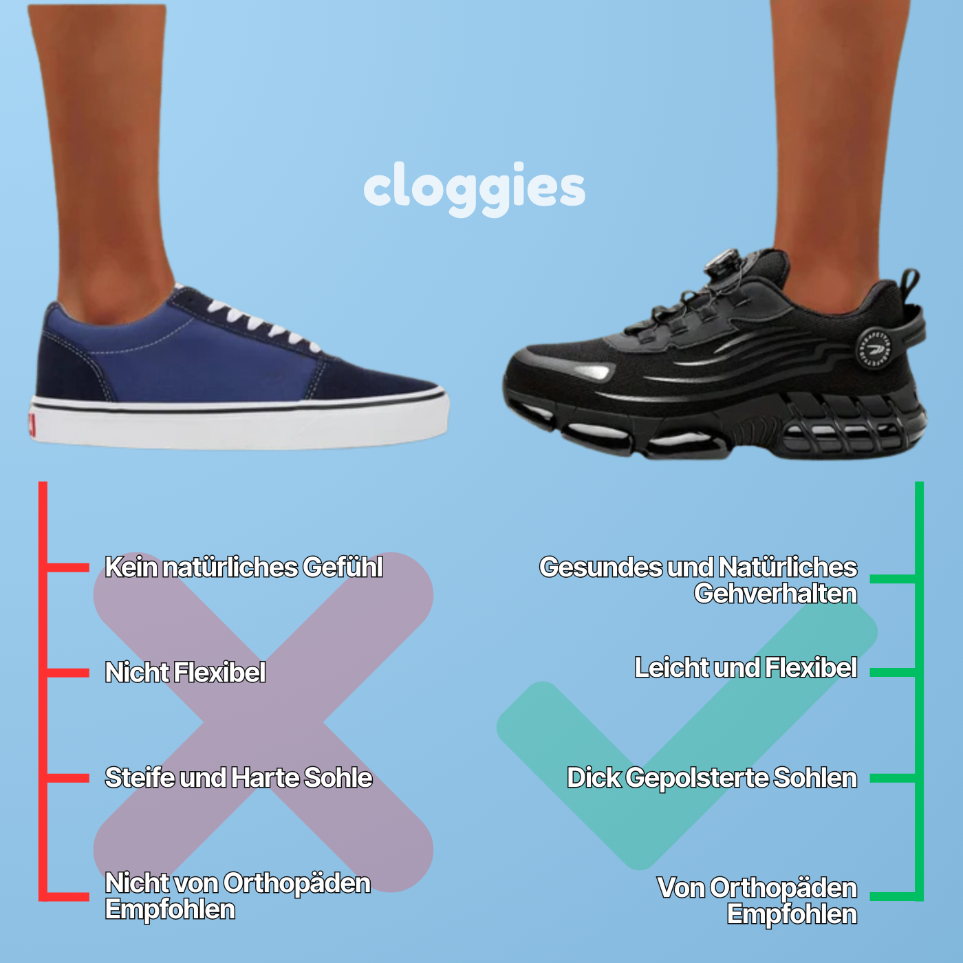 Unsere Cloggies-Sneakers wurden sorgfältig für den Alltag, die Arbeit und Outdoor-Aktivitäten entwickelt und bieten außergewöhnlichen Komfort und Halt. Diese Schuhe werden von Orthopäden und Podologen aufgrund ihrer ergonomischen Konstruktion empfohlen und sind ideal, um die Fußgesundheit zu verbessern und Schmerzen zu lindern. Gehen Sie selbstbewusst, denn Sie wissen, dass Sie sowohl bei Ihren Abenteuern als auch für Ihre Fußgesundheit gut unterstützt sind.