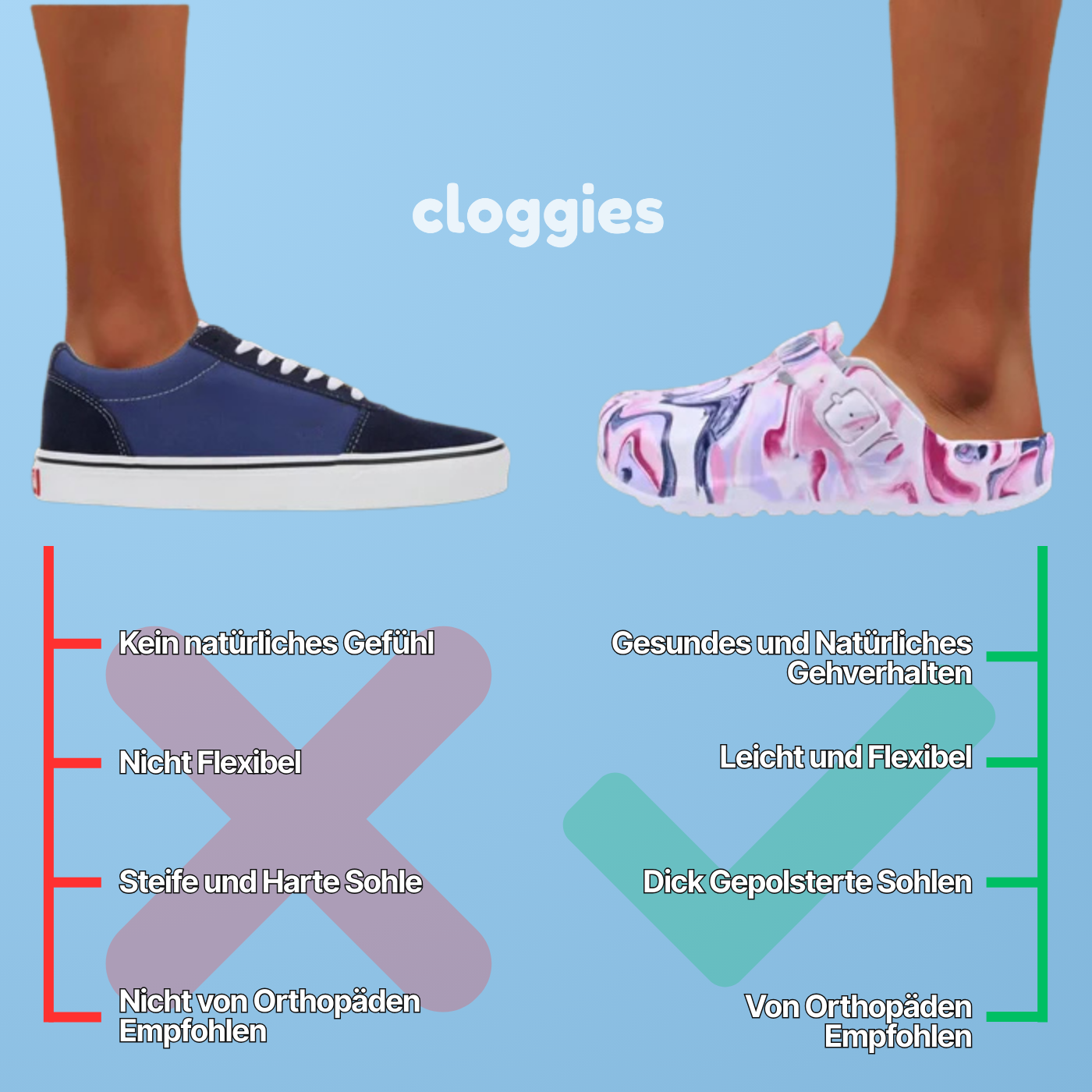 Die Clogs von Cloggies wurden sorgfältig für den Alltag, die Arbeit und Outdoor-Aktivitäten entwickelt und bieten außergewöhnlichen Komfort und Halt. Diese Clogs werden von Orthopäden und Podologen aufgrund ihrer ergonomischen Konstruktion empfohlen und sind ideal, um die Fußgesundheit zu verbessern und Schmerzen zu lindern. Gehen Sie selbstbewusst, denn Sie wissen, dass Sie sowohl bei Ihren Abenteuern als auch für Ihre Fußgesundheit gut unterstützt sind.