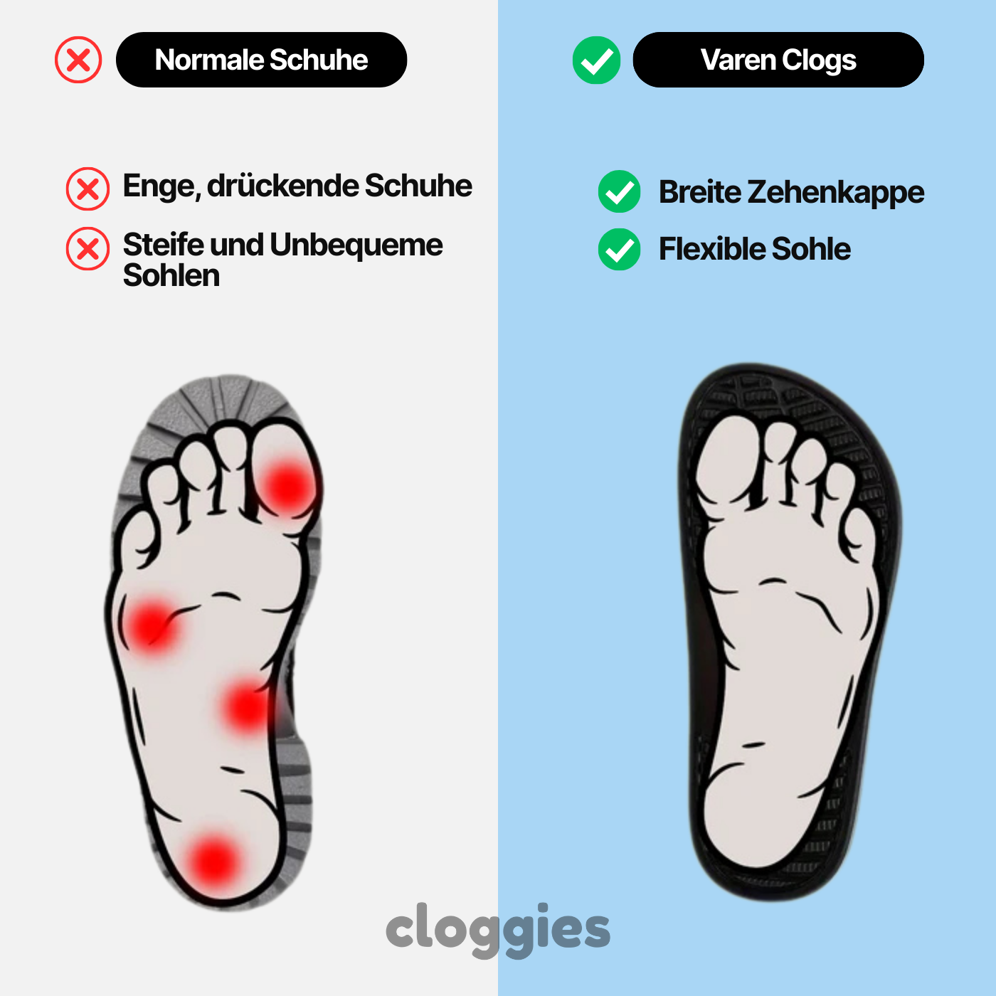 ✓ Vielseitige Verwendung – Die leichten und flexiblen Varen Clogs von Cloggies eignen sich perfekt für den täglichen Gebrauch und bieten Komfort und Unterstützung bei verschiedenen Fußgesundheitsproblemen.